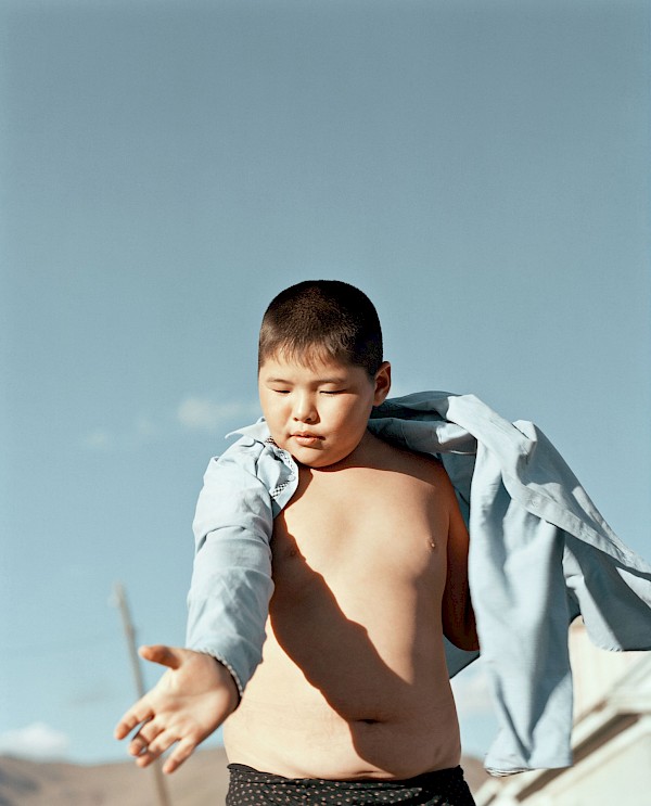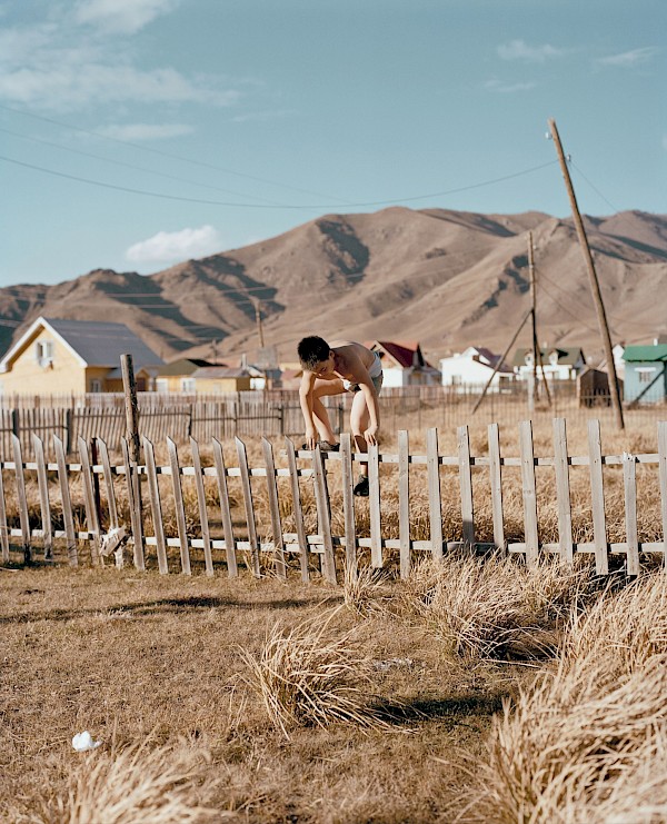 All the boys Hyland photographed now live in Ulaanbaatar, the nation’s capital, and many of them are from families who have recently migrated to the capital to survive the disastrously cold winters that have devastated the herds of livestock they once tended to survive. The resulting influx of people has changed the geographic landscape of the city into a patchwork quilt of Soviet-era tower blocks and parcels of land filled with the gers (or yurts) of recent migrants to the city.