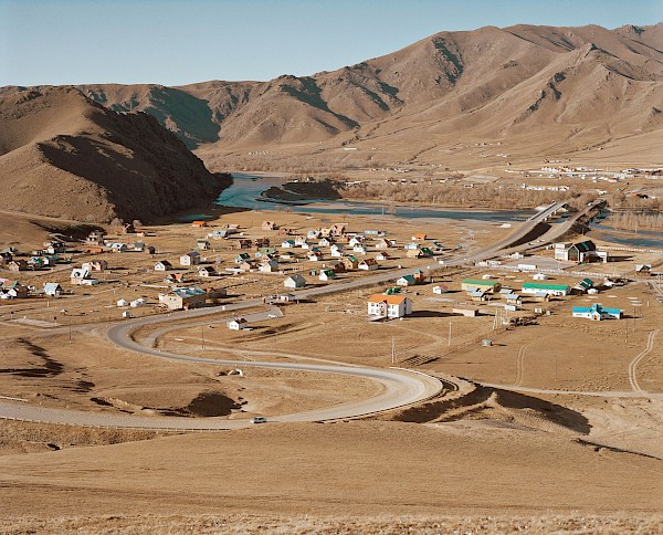 One image from foothills that surround the village shows how landscape and a sense of place are embedded in Mongolian lives. Ridged hills fall down onto a flat valley of scorched vegetation, a grassland through which a river and a road wind. But climate change has resulted in increasing desertification, the loss of grassland and increasingly harsh winters.